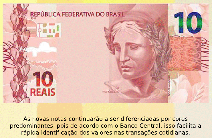 Após mostrar o papel moeda antigo são apresentadas as novas notas que