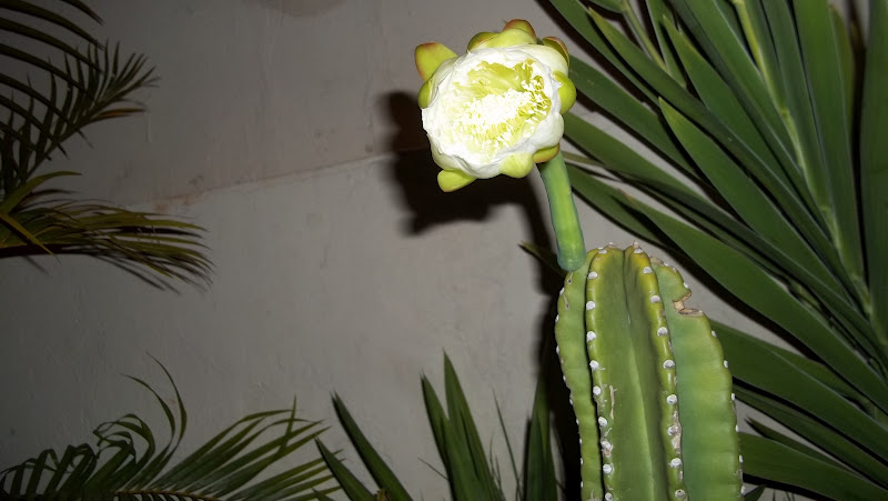 Como gosto muito de flor-de-cactus, por sua beleza e delicadeza, em 2010, no Dia dos Namorados, meu marido deu-me um belo Cactus Mandacaru, cuja flor, depois de alguns meses, descobri ser branca. Como a flor é efêmera, dura algumas horas apenas, fotografei cada fase dela, que recebí como beijos de meu marido, do botão até seu declínio e coloco aqui para dividir com vocês: